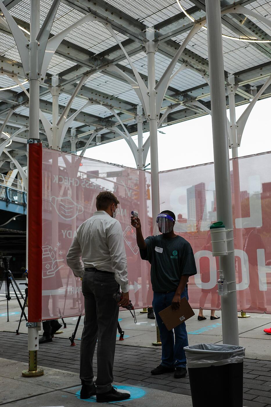 “The Front Porch came about when Brooklyn LAB realized its indoor lobby was not large enough to accommodate people while they wait to be screened for entrance. Benjamin Krall, founder and chief executive officer at Urban Umbrella, said that he’s ‘delighted to see that our sidewalk shed alternative… can be ‘hacked’ to help create a safe and healthy learning environment for children.’”