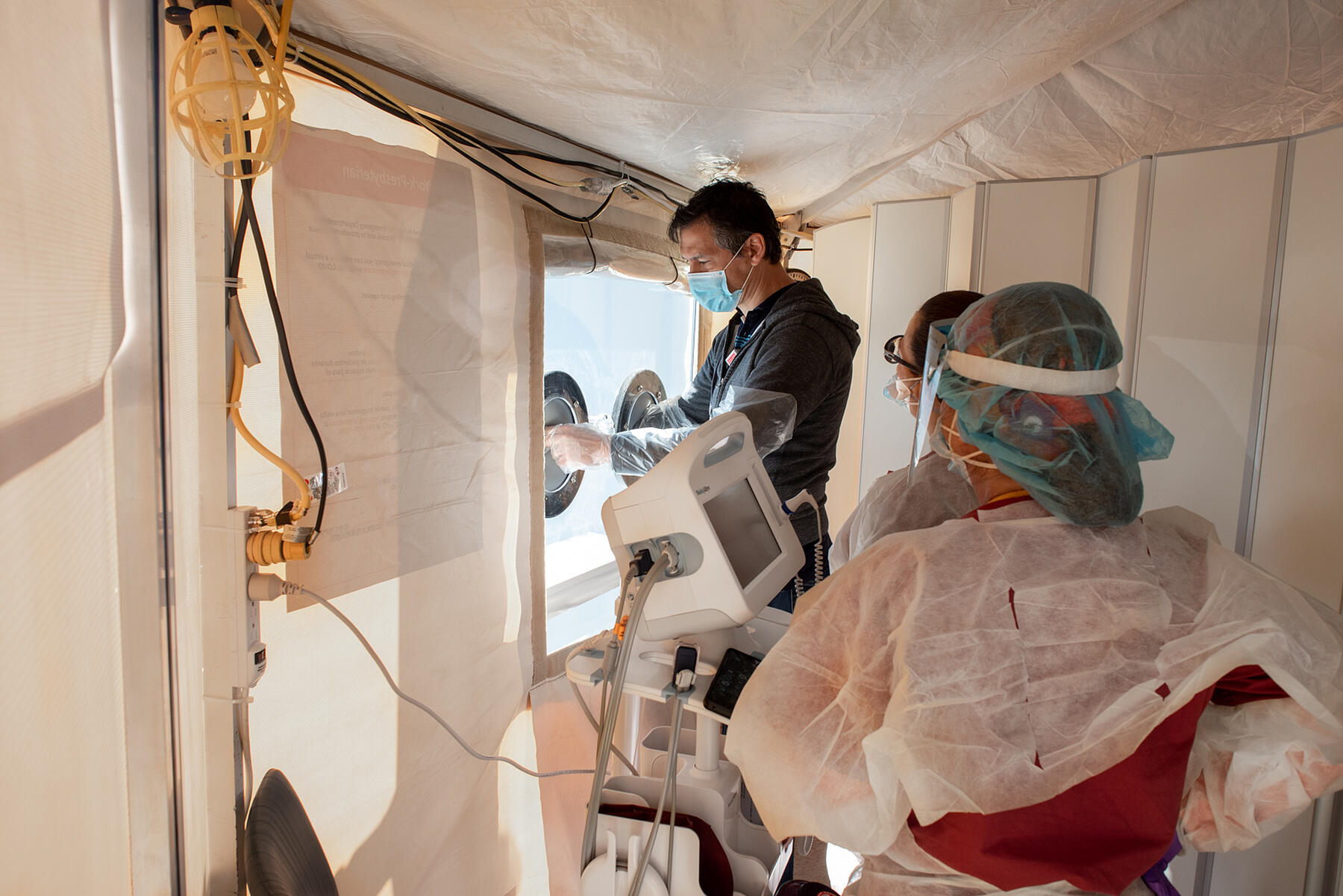 September 29th 2021During the early stages of the COVID-19 pandemic, our team pivoted our focus to address ways that screening centers could dramatically scale up their operations while improving safety for the public and medical teams involved. Our approach involved collaboration with local hospitals, engineers and City departments. We developed a rapid prototype of a patient screening booth that could be implemented as part of a broader strategy to utilize public space and existing interiors in ramping up testing to meet urgent health needs in our community.