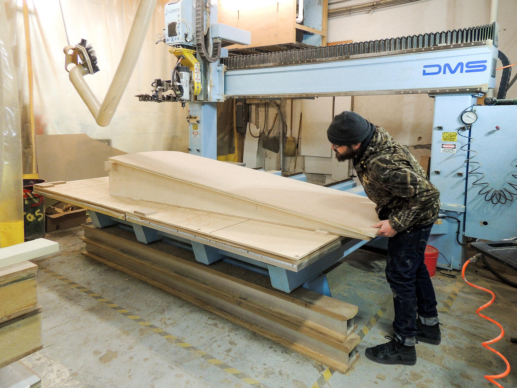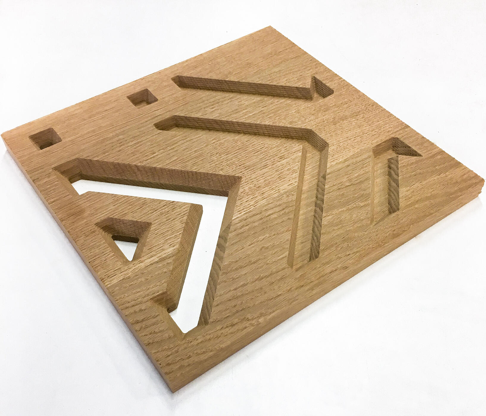 For the base wall layer, we detailed rift-sawn oak veneer to create a graceful changing curve forming the exterior wall of the chapel. With traditional carpentry techniques, our team laminated veneer into unique armature sections for curved areas, while flat sections were simplified for cost effectiveness. Because the chapel needed to precisely integrate with the base building, as it is located at the heart of the building, our team designed each module for material efficiency, site access and ease of installation. We worked closely with the architect to do various studies of the chapel’s wall geometry so that all complex field conditions and parts of the base building were carefully concealed and coordinated.