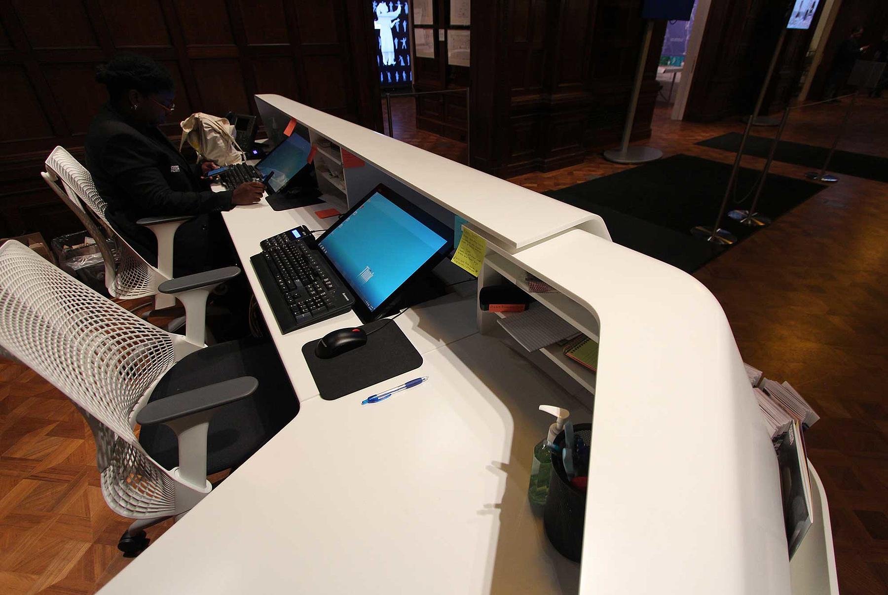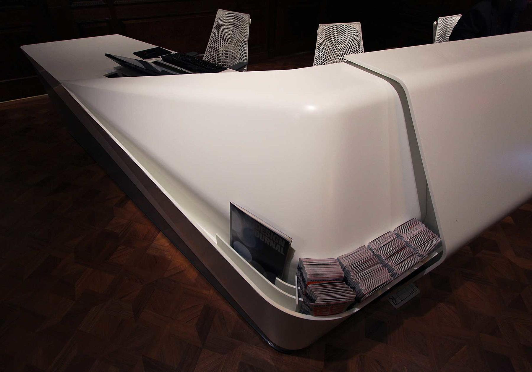For the 2014 reopening of the Cooper Hewitt, Smithsonian Design Museum, we worked with DS+R’s design team to fabricate a custom solid surface reception desk.
