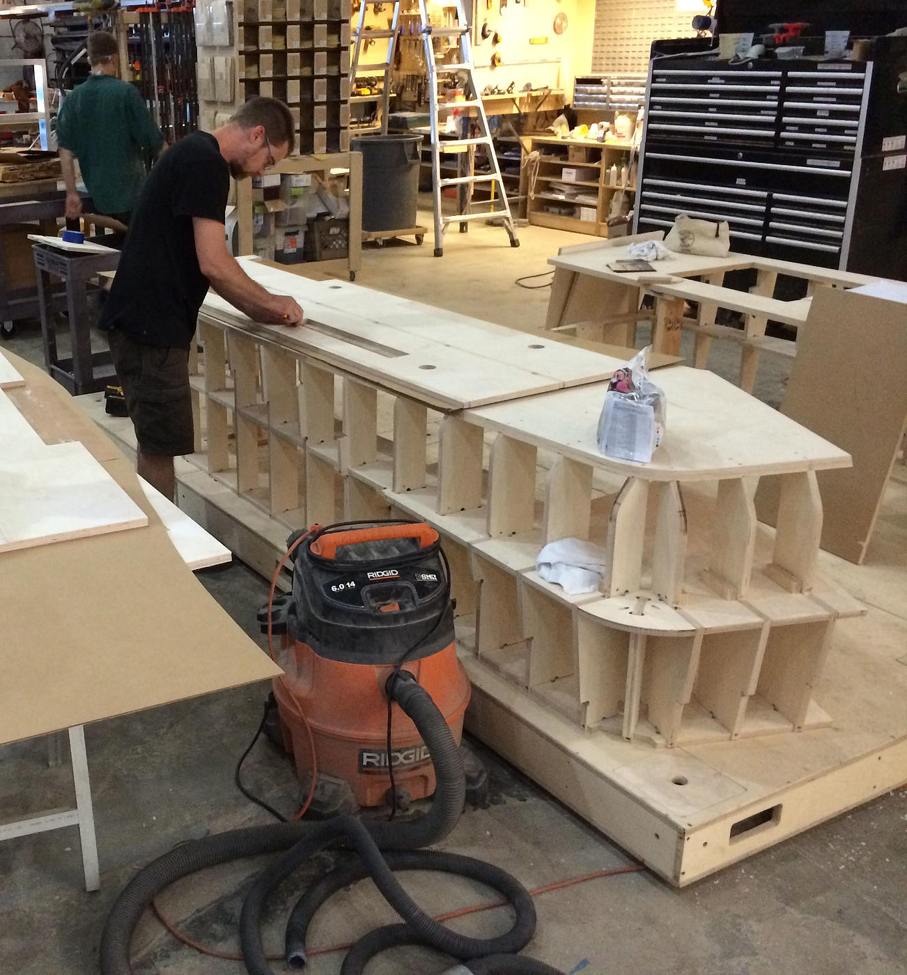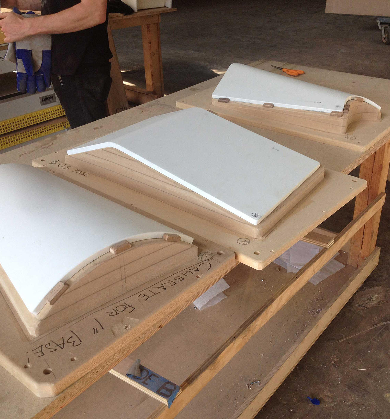 Our process entailed deconstructing the design into 16 distinct pieces, thermoforming each piece out of solid surface and coupling this process with CNC-milling to join them back together with invisible seams. With a focus on enhancing the visitor experience within the museum, our fabrication work for this project included the creation of custom cabinetry and media displays to meet the needs of staff and visitors.