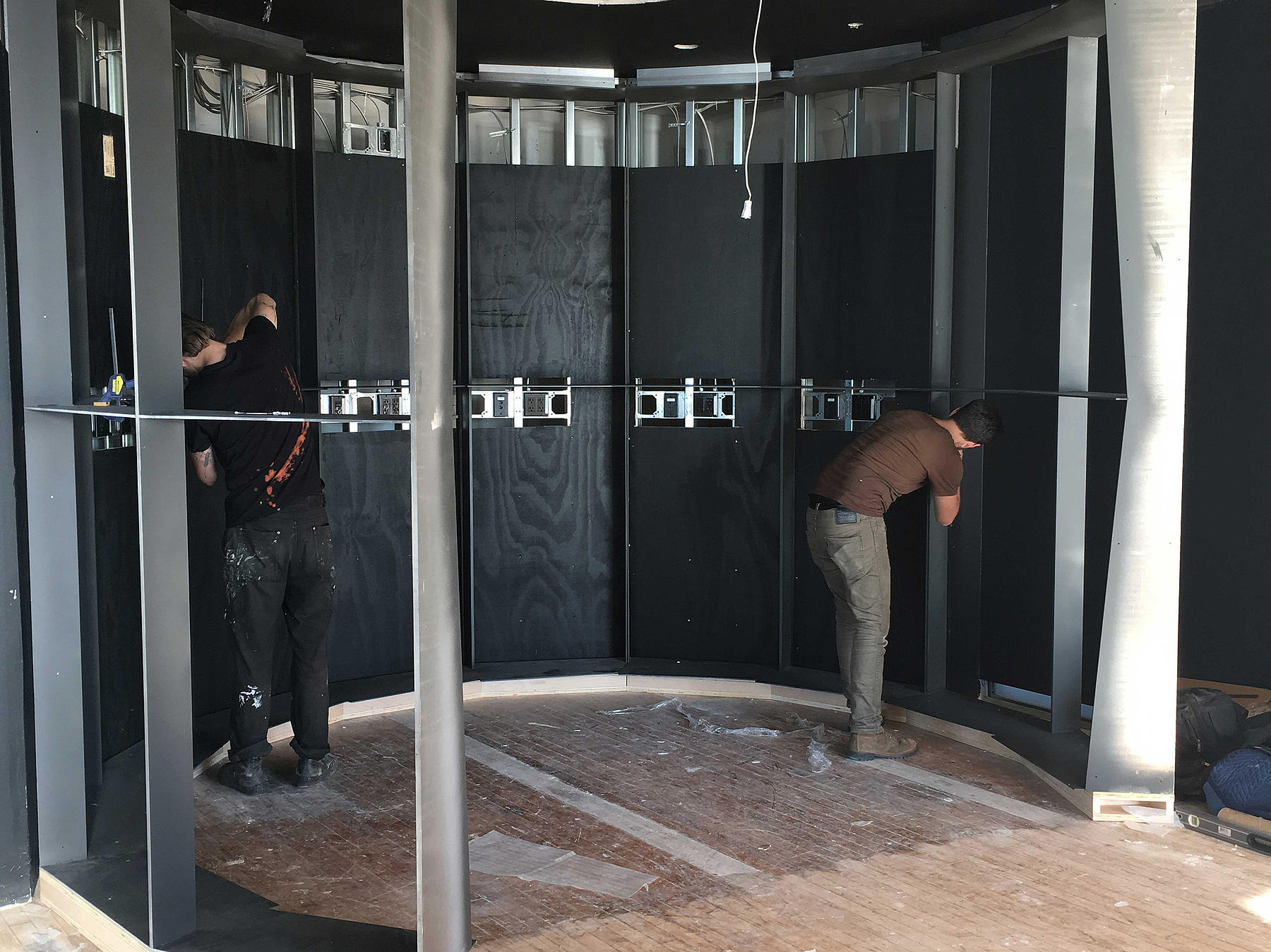 As guests and visitors interact in the space, their voices and movements are transformed into data that generate an informational and artistic record of their journey.