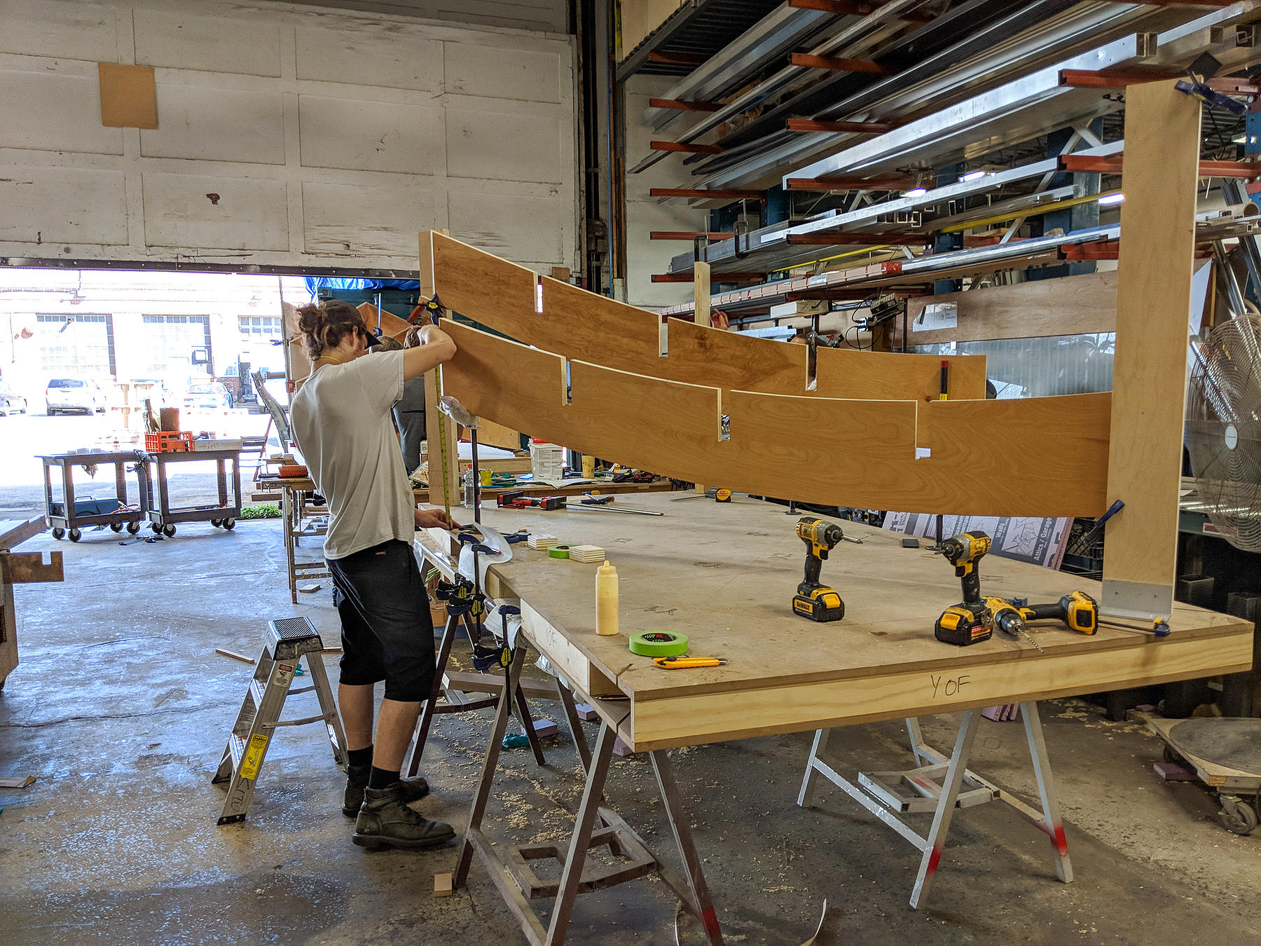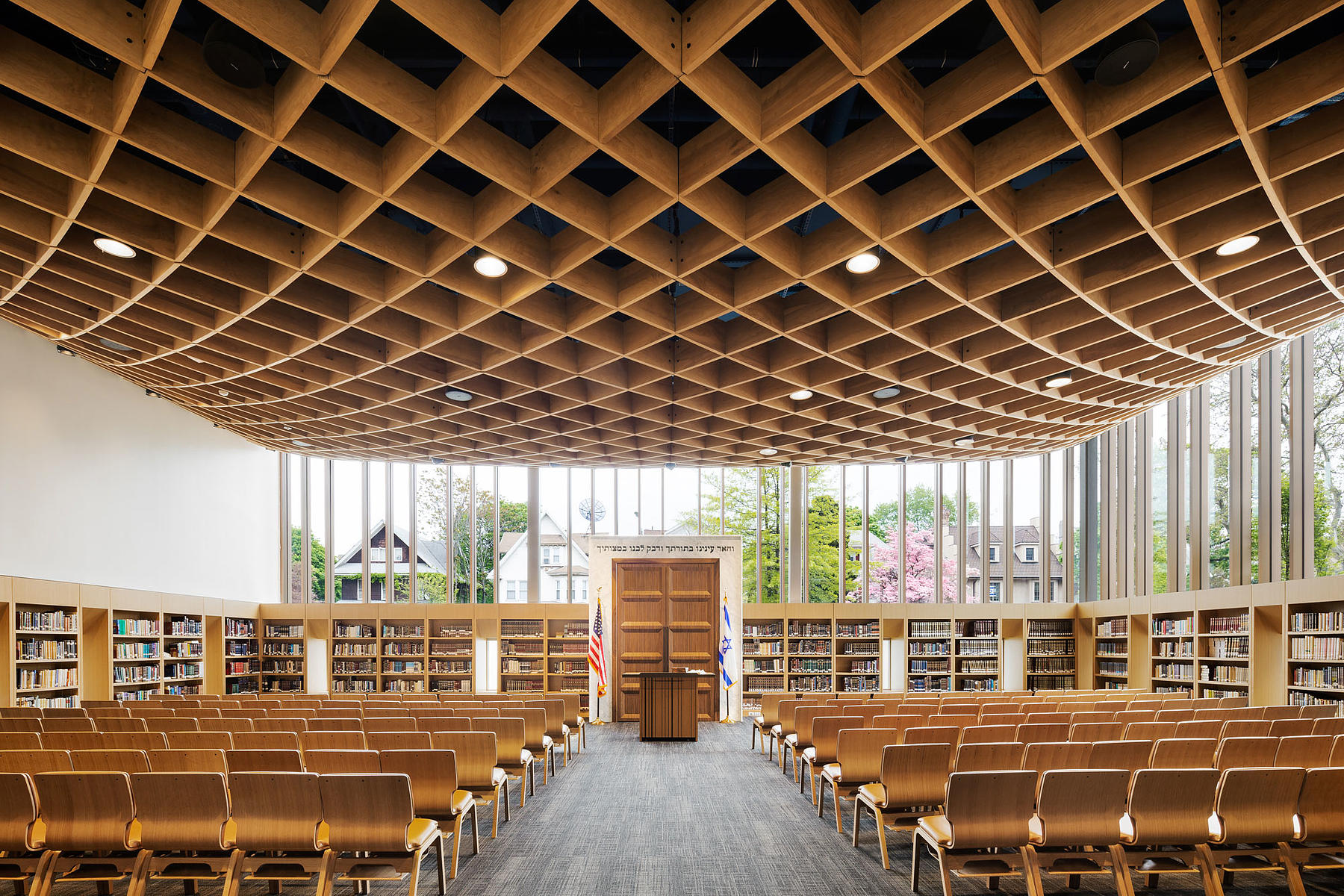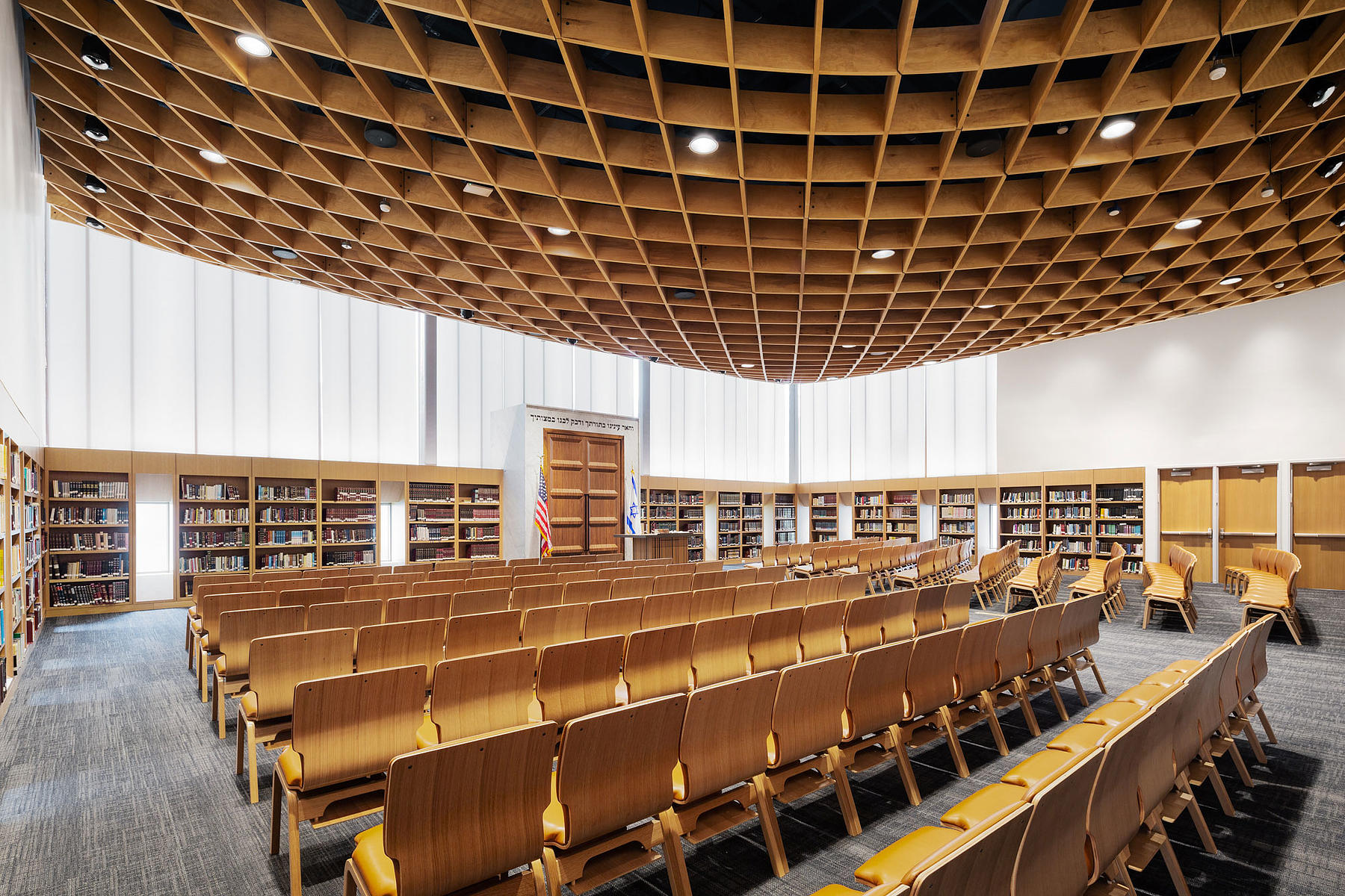 As part of the expansion of the Joel Braverman High School in Brooklyn, Dattner Architects approached us to fabricate a monumental wooden canopy for the school’s BenHaim Bet Midrash. The challenge was to find a cost-effective approach, while still creating the same transformative impact on the space.