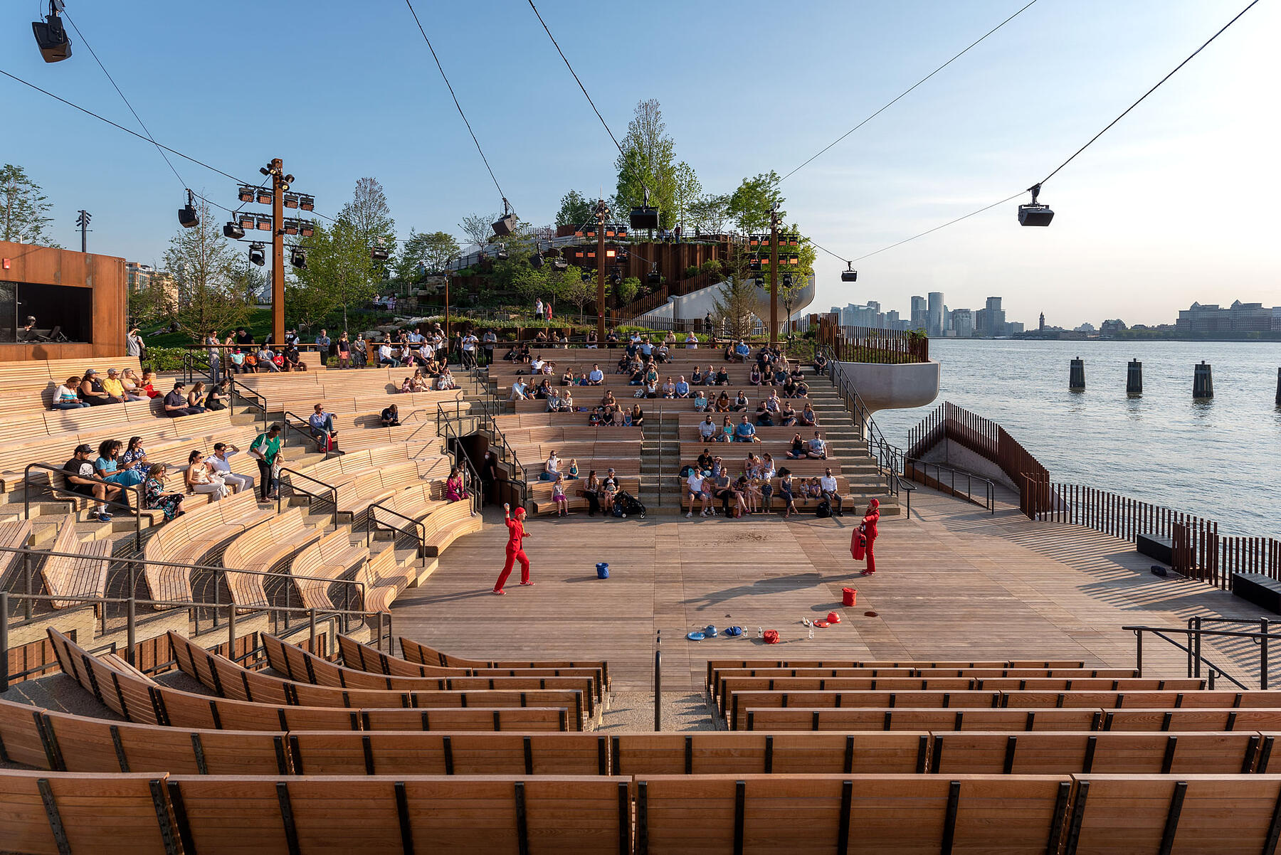 Little Island’s 700-seat amphitheater is host to all kinds of live performances. Many of these are long format events, so the audience’s comfort is an important design consideration. Our fabrication approach leverages steam-bending and CNC-milling to create the unique complex curved wood slats that form many of the amphitheater seats. Sustainability is another critical goal with this project so we specified locally-sourced black locust lumber, which is a durable and abundant domestic hardwood that also performs well in steam-bending.