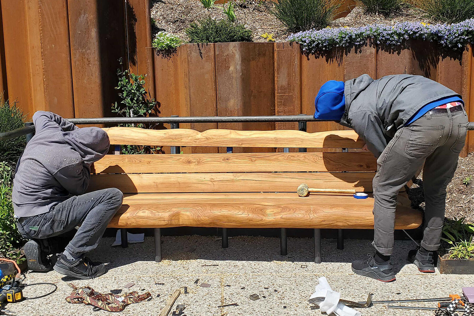 We worked closely with the primary design team (led by Heatherwick Studio, MNLA and Standard/Architects) to develop a material approach that aligned cohesively with their vision for the park. Drawing upon our expertise in woodworking, metalworking and specialty finishing, we bolstered this vision with techniques that forefront durability, comfort and sustainability.