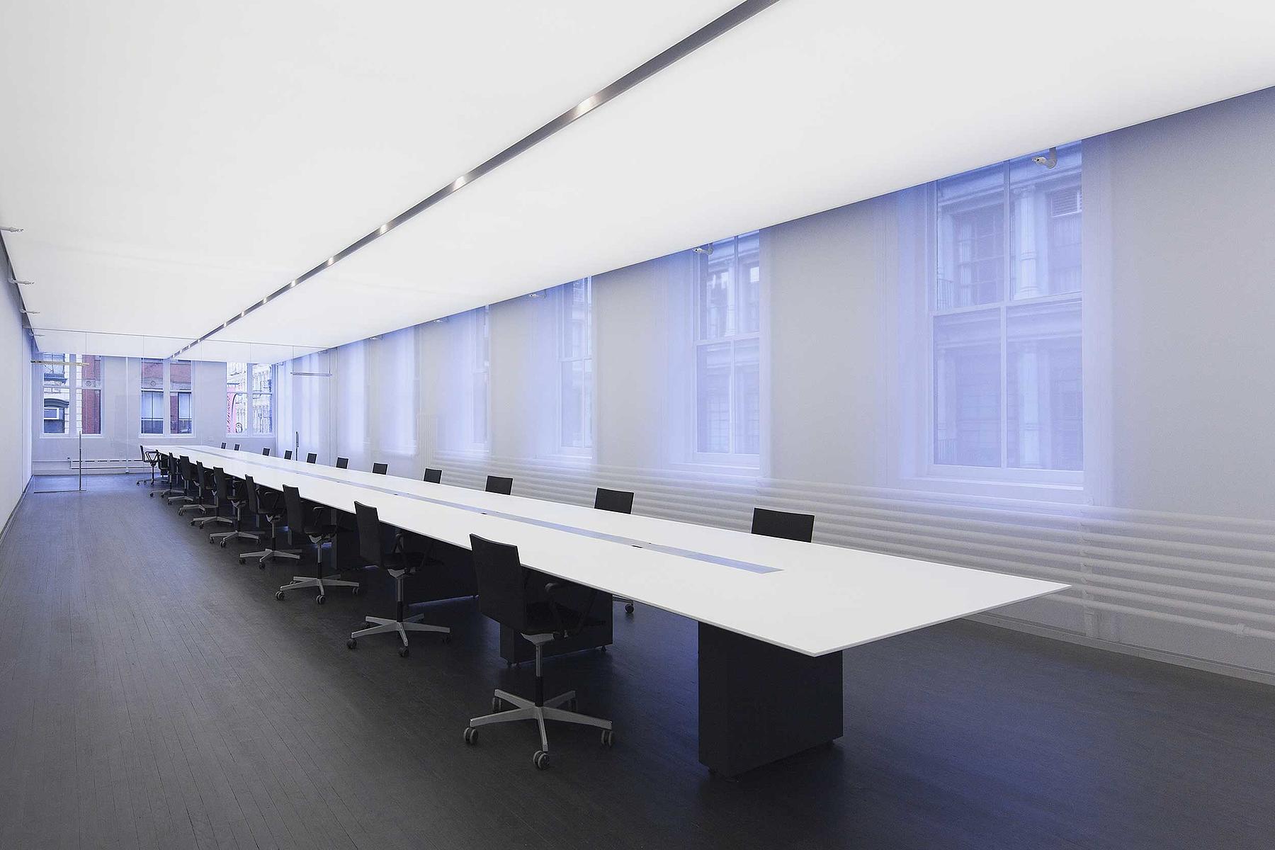 As part of the New York office for Logan, a bi-coastal video production company, we worked with SO–IL to to build two 65-foot custom work tables that anchor the office’s core workspace.