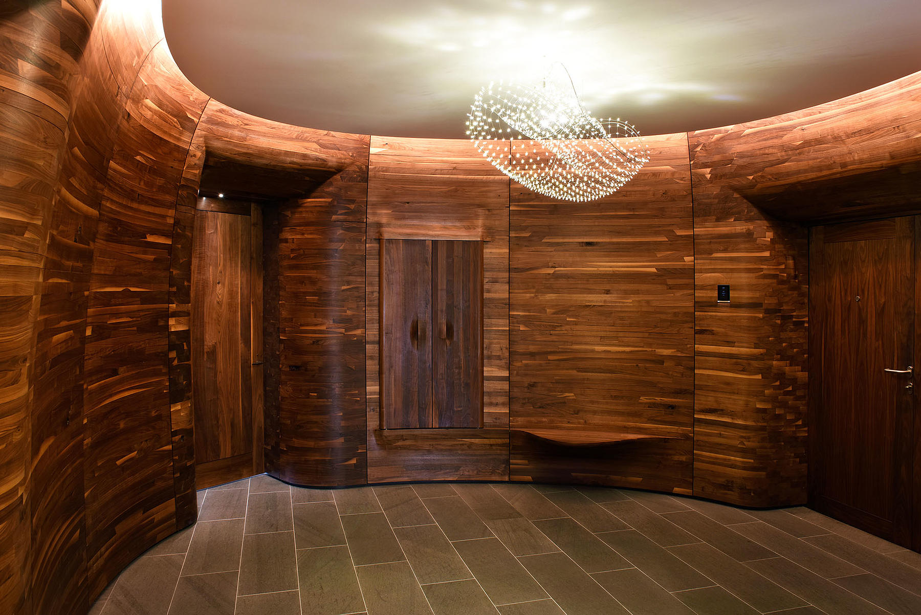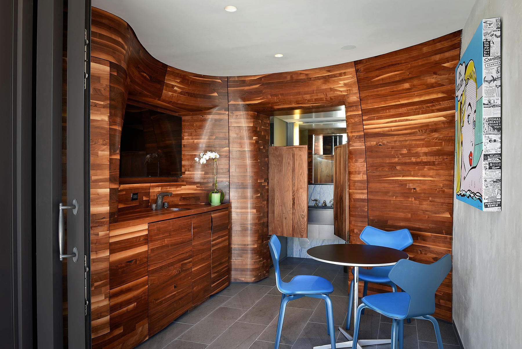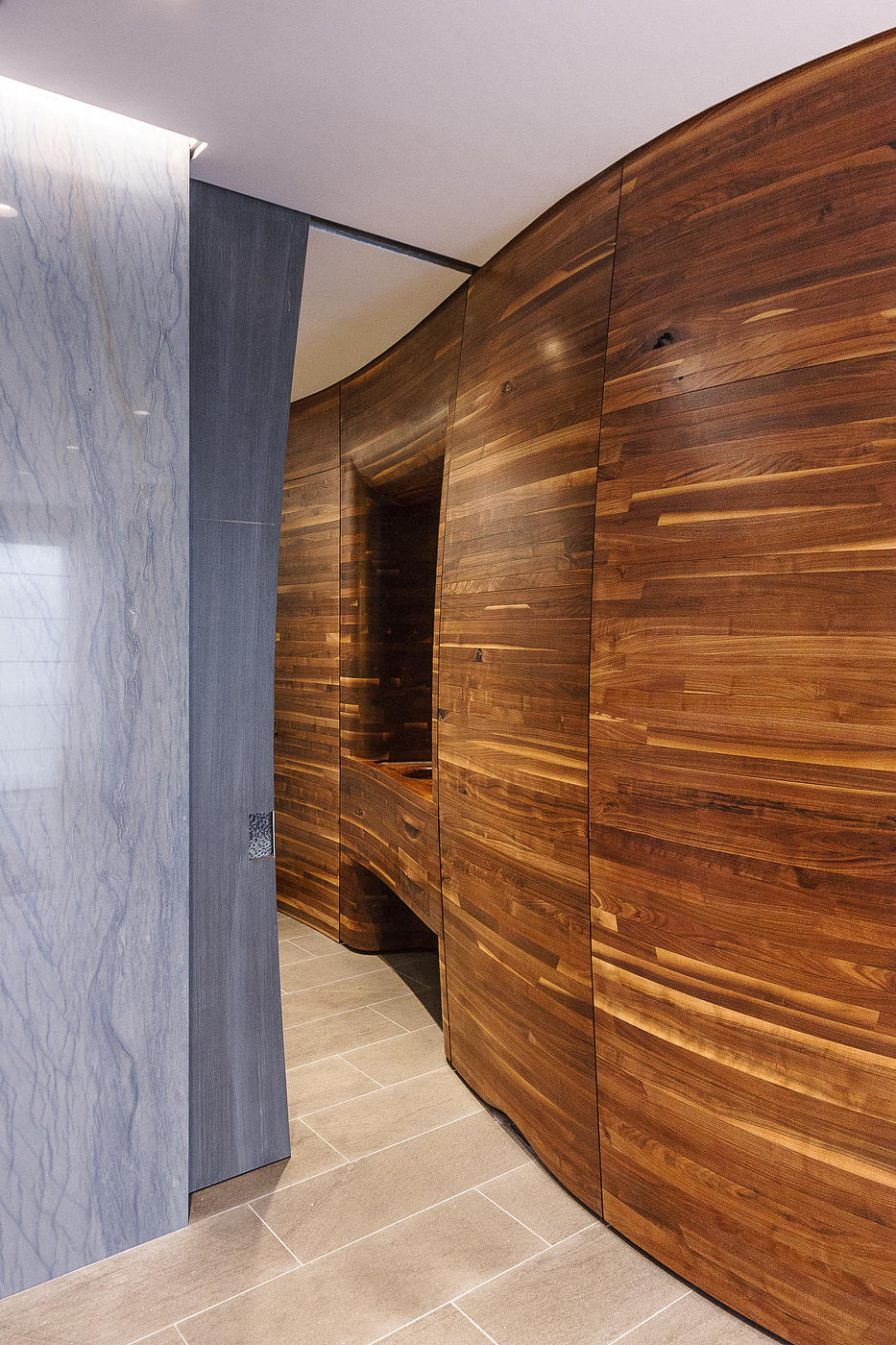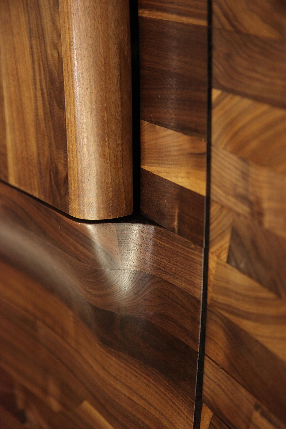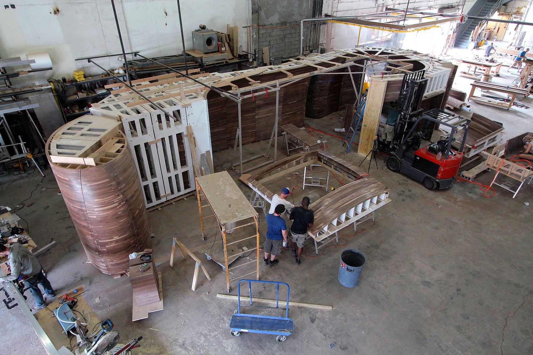 Assisting the designer with the engineering and fabrication, we worked with Aaron Korntreger to transform a private Palm Beach residence with a series of undulating walnut wall panels.