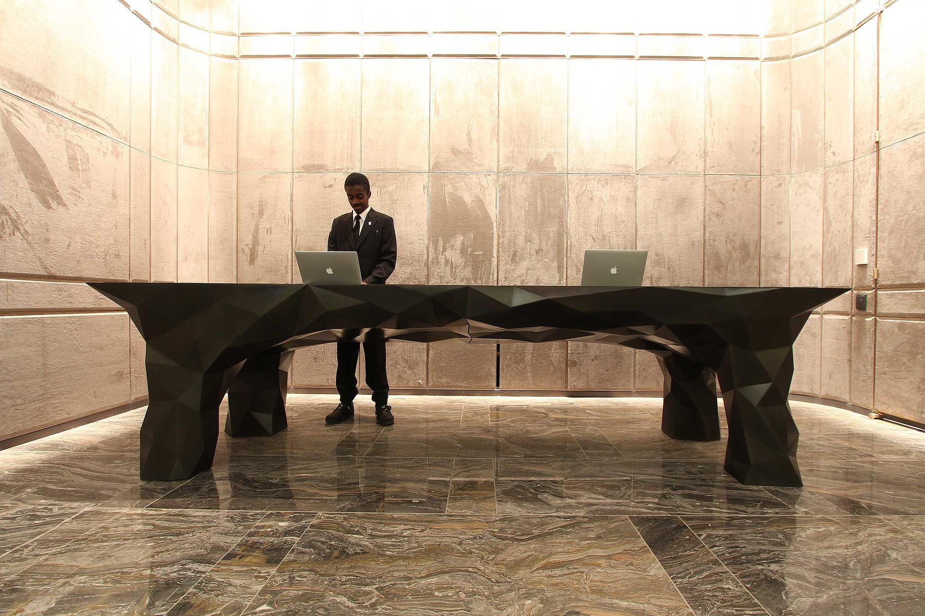 Striving to balance contemporary luxury and inventive design, the Park Hyatt New York commissioned us to create a grand reception desk and matching concierge desks for their 57th Street hotel lobby.