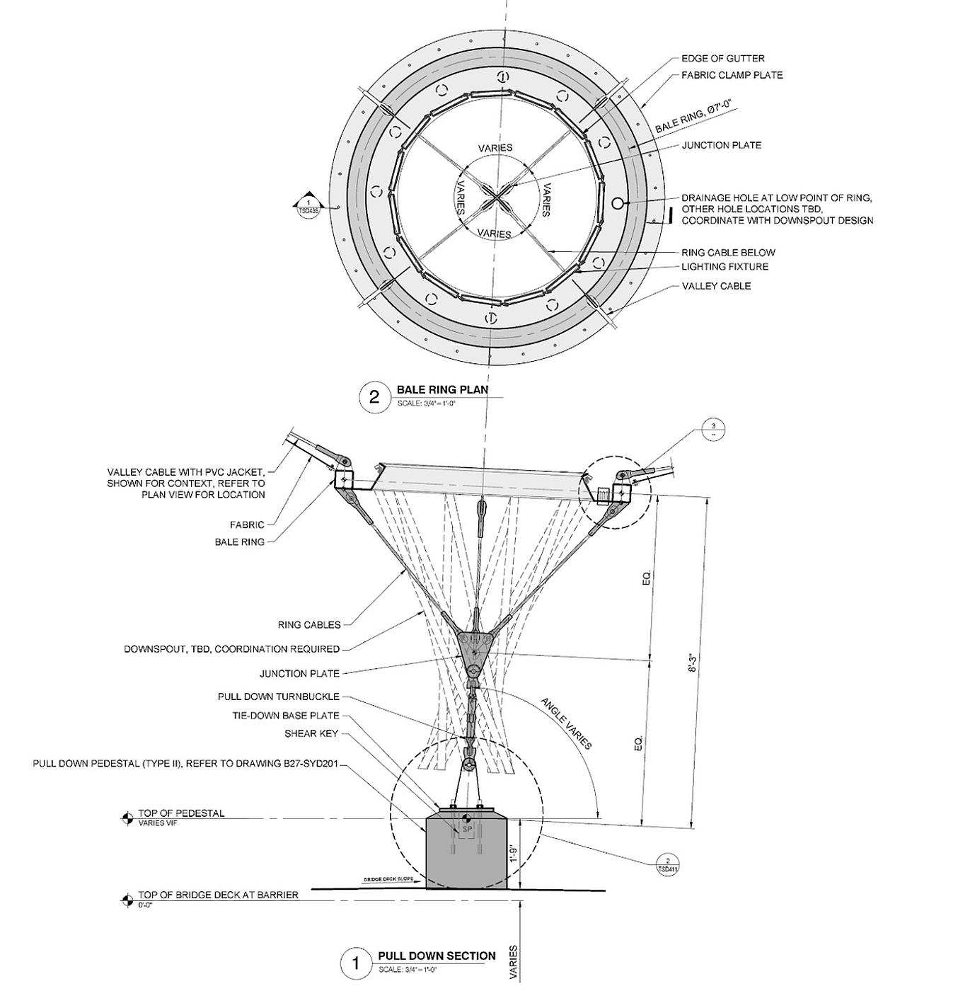 The RTS Pedestrian Bridge, with its water diverters, promotes eco-friendly transportation and enhances the connectivity of Microsoft's campus and public transit systems. Our work on this project underscores SITU Fabrication's technical prowess and dedication to contributing positively to the built environment.