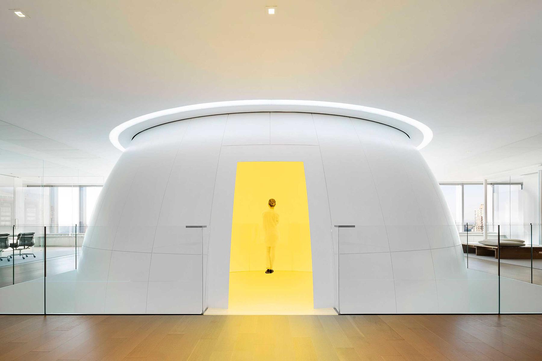 Working closely with James Turrell’s design team and the project architects, we developed an innovative method for making each unique panel and seamlessly assembling the piece. In line with the rigorous concept of the artist, this Ganzfeld project creates a fully-immersive and architectural experience of color.