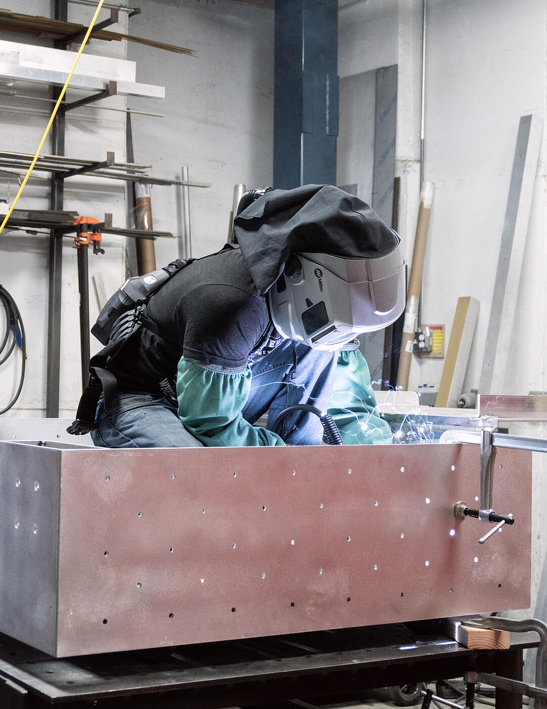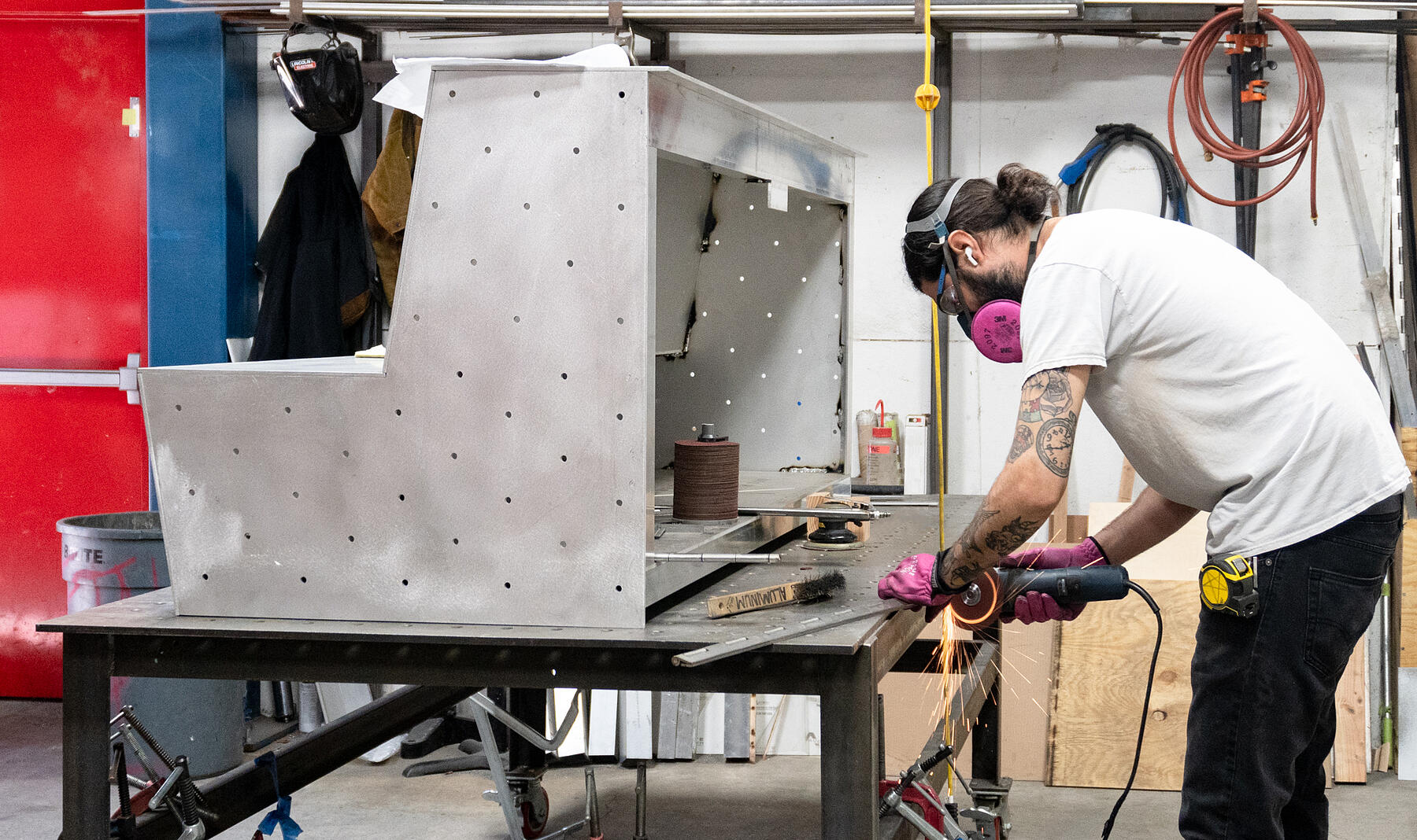 A variety of intricate details were worked out by our fabrication team including integrated leveling jacks to rapidly level the modules, recessed hinges for operable panels, security locks, bumpers, collapsible backdrop members, and other innovative features that allowed for ease of use. We meticulously staged and dry fit the various components in our 10,000 sqft shop to ensure the system’s flexibility, durability, user accessibility, and safety.