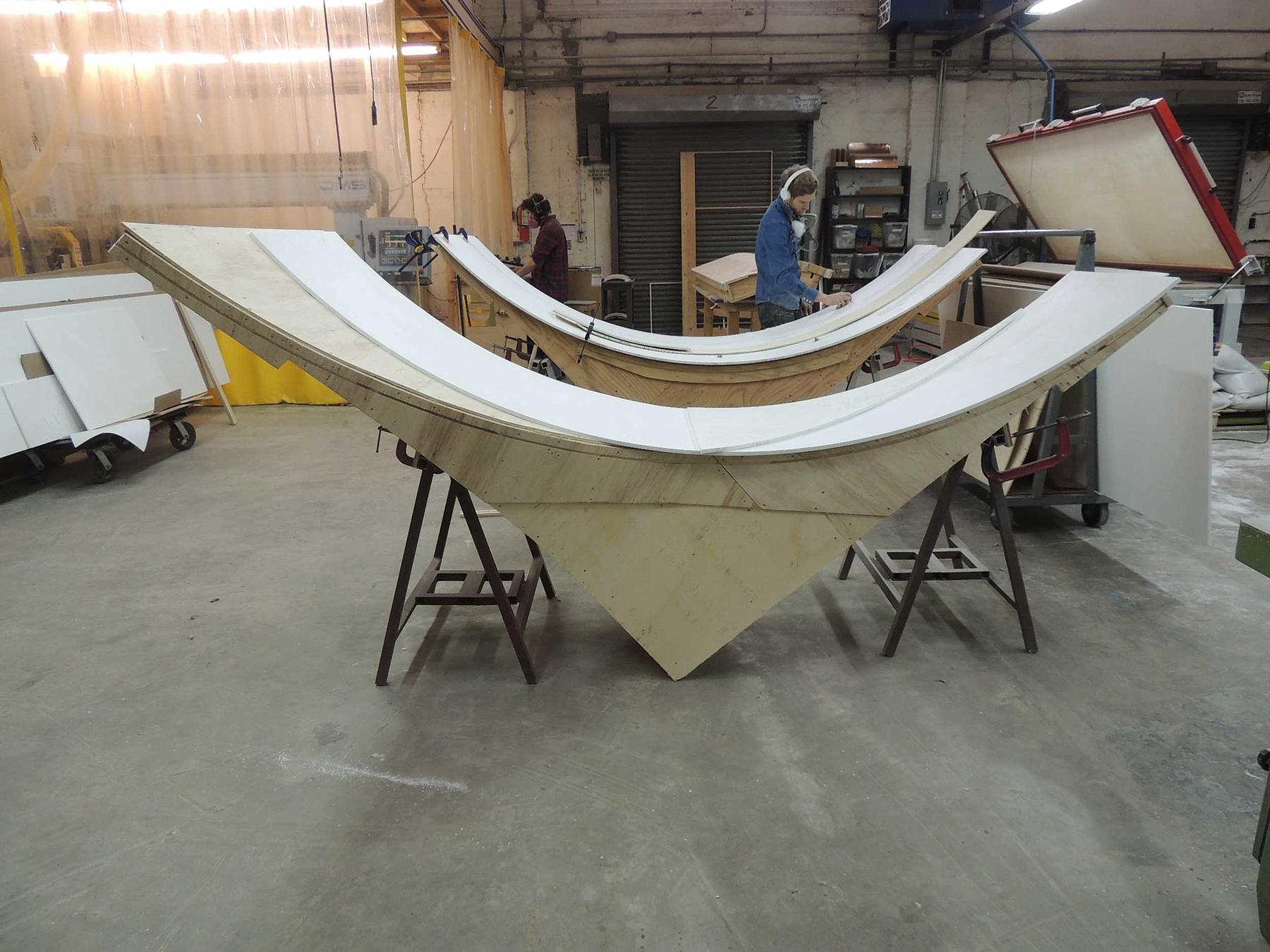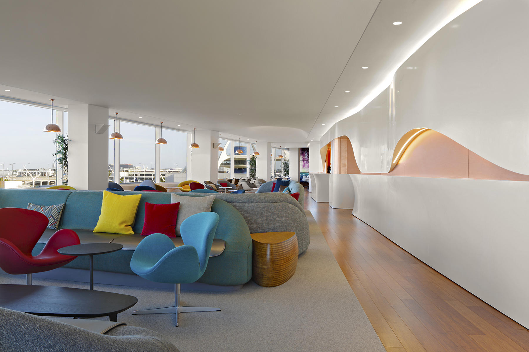 Utilizing a range of digital and traditional fabrication services, we helped Slade Architecture realize their sleek design for the Virgin Atlantic Clubhouse at LAX.