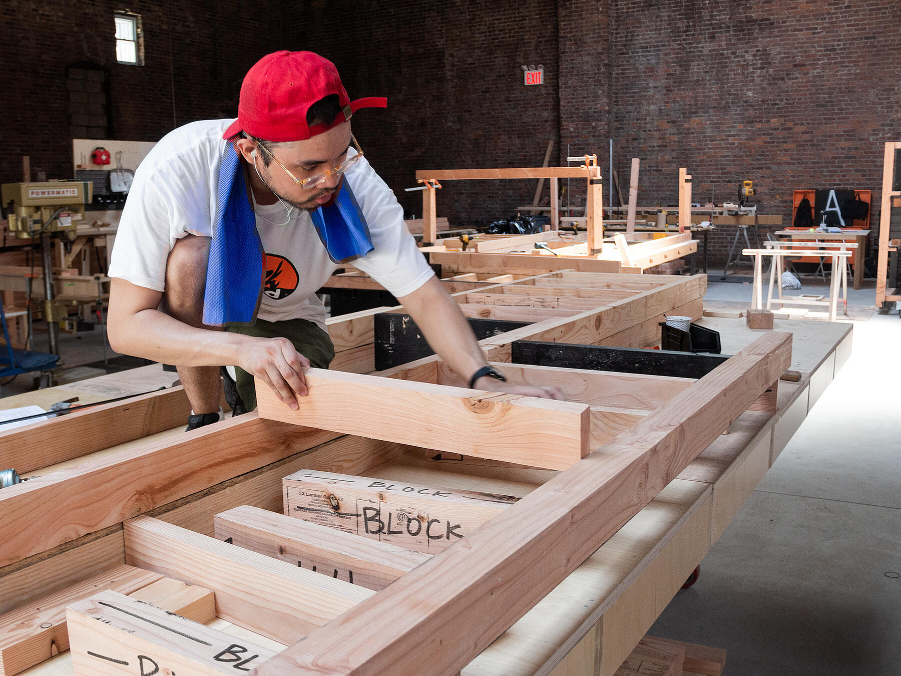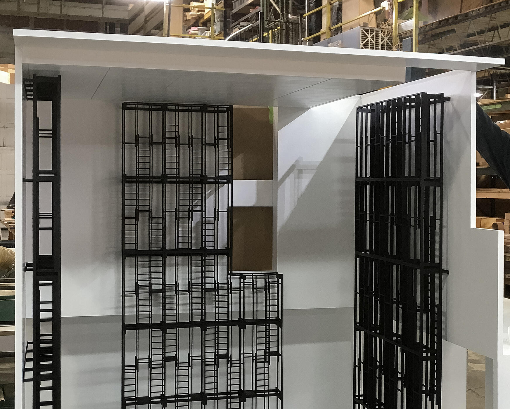 To begin the process, we fabricated a scale model for Pendleton’s team to visualize the aesthetic detailing and careful installation into MoMA’s atrium. After reviewing with the artist, we produced and erected a full-scale mockup of four scaffolding units at our shop in the Brooklyn Navy Yard for developing fabrication methods and installation sequence and making design revisions.