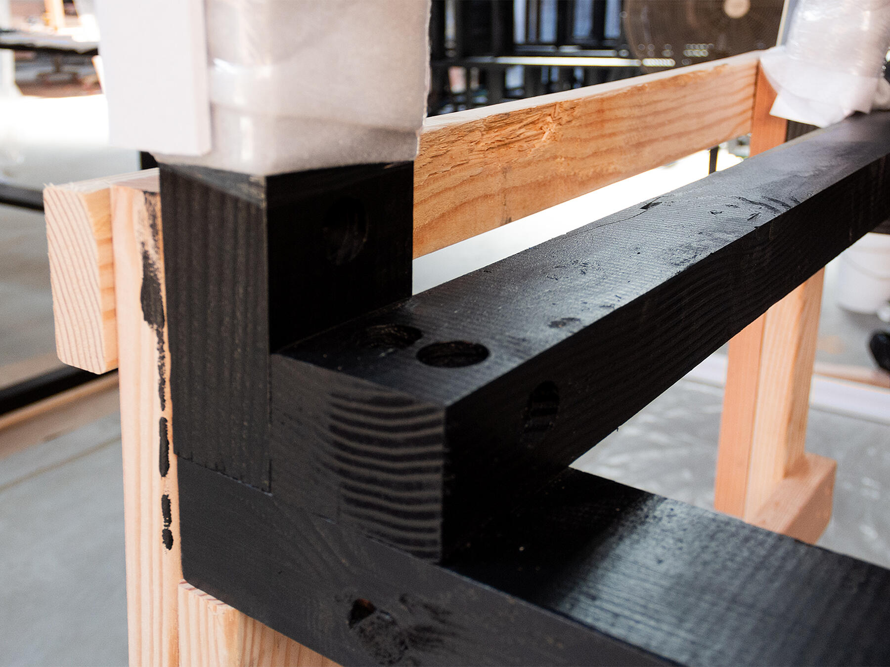 Because of the artist’s vision to use non-standard dimensions and precise edge profiles, we carefully sourced custom milled douglas fir beams instead of using off-the-shelf products. We worked through each connection and detail to ensure the installation met with the artist's standards—including how members were mechanically fastened and how the visual impact of hardware could be minimized.