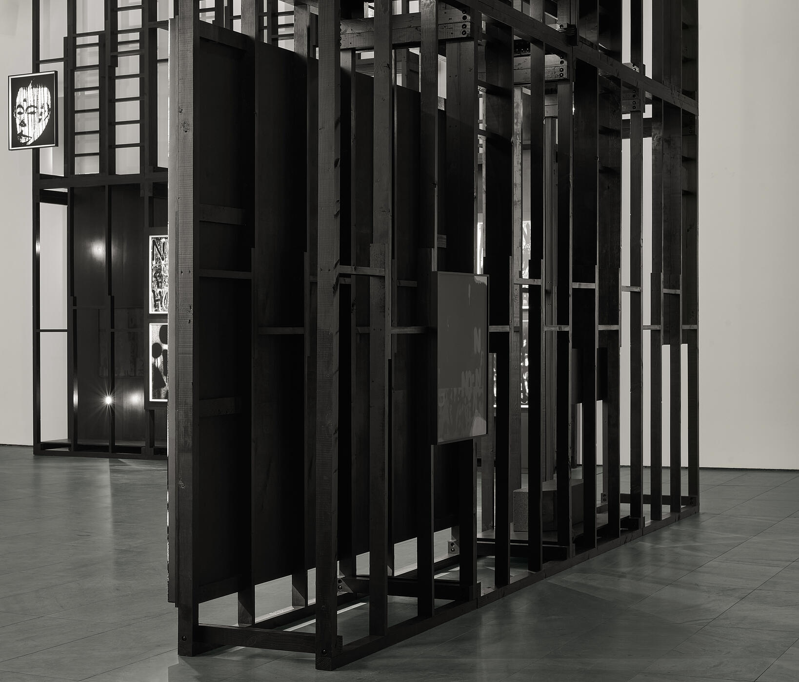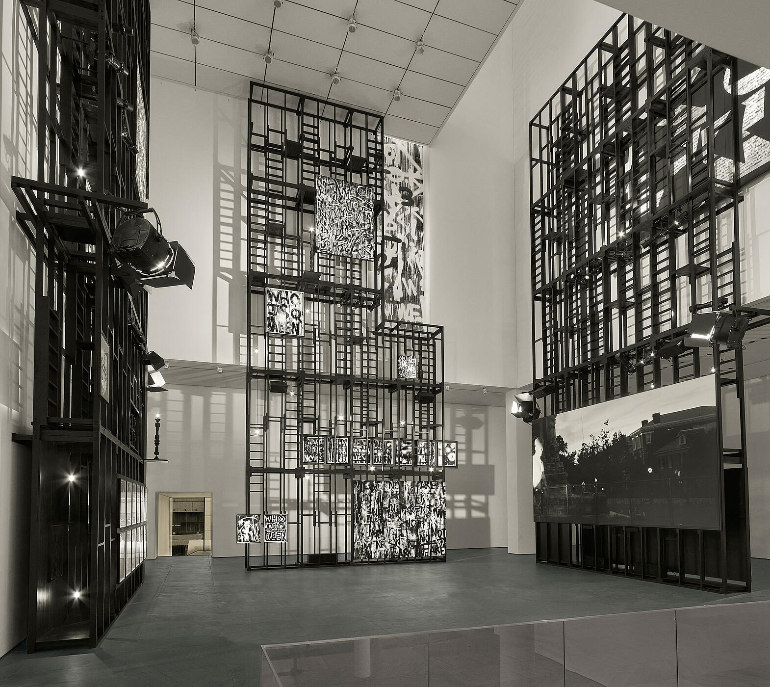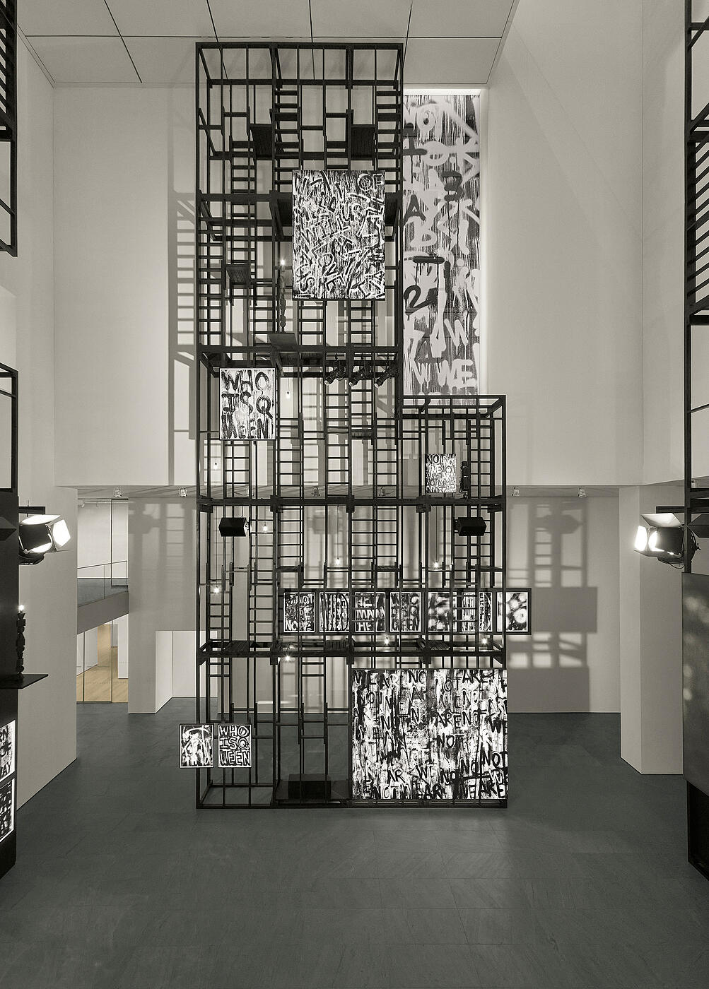 The custom painted scaffold system was developed by the artist with Frederick Tang Architecture for a monumental presence in MoMA’s The Donald and Catherine Marron Family Atrium. Aside from the distinct engineering challenges posed by its impressive scale, the structure- composed of a modular system we developed- also integrates a variety of the artist’s artwork and theatrical equipment as a complete installation for one of New York City’s historic cultural institutions.