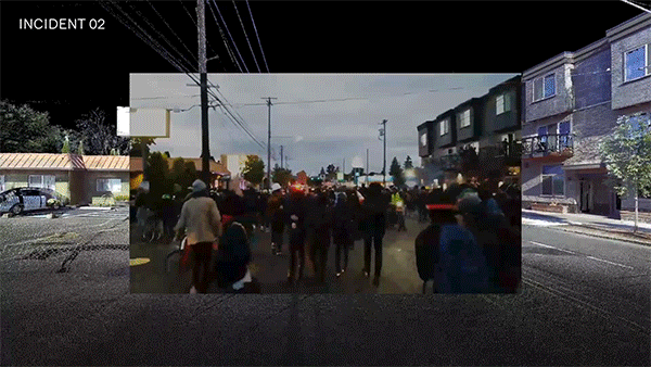 In preparation for the case, SITU Research was commissioned by Don’t Shoot Portland, and their legal team—the Oregon Justice Resource Center, Levi Merrithew Horst and Albies & Stark—to produce a reconstruction of the night’s events. Our analysis was then used in court to provide context and access to the large number of citizen videos documenting the protest that evening.