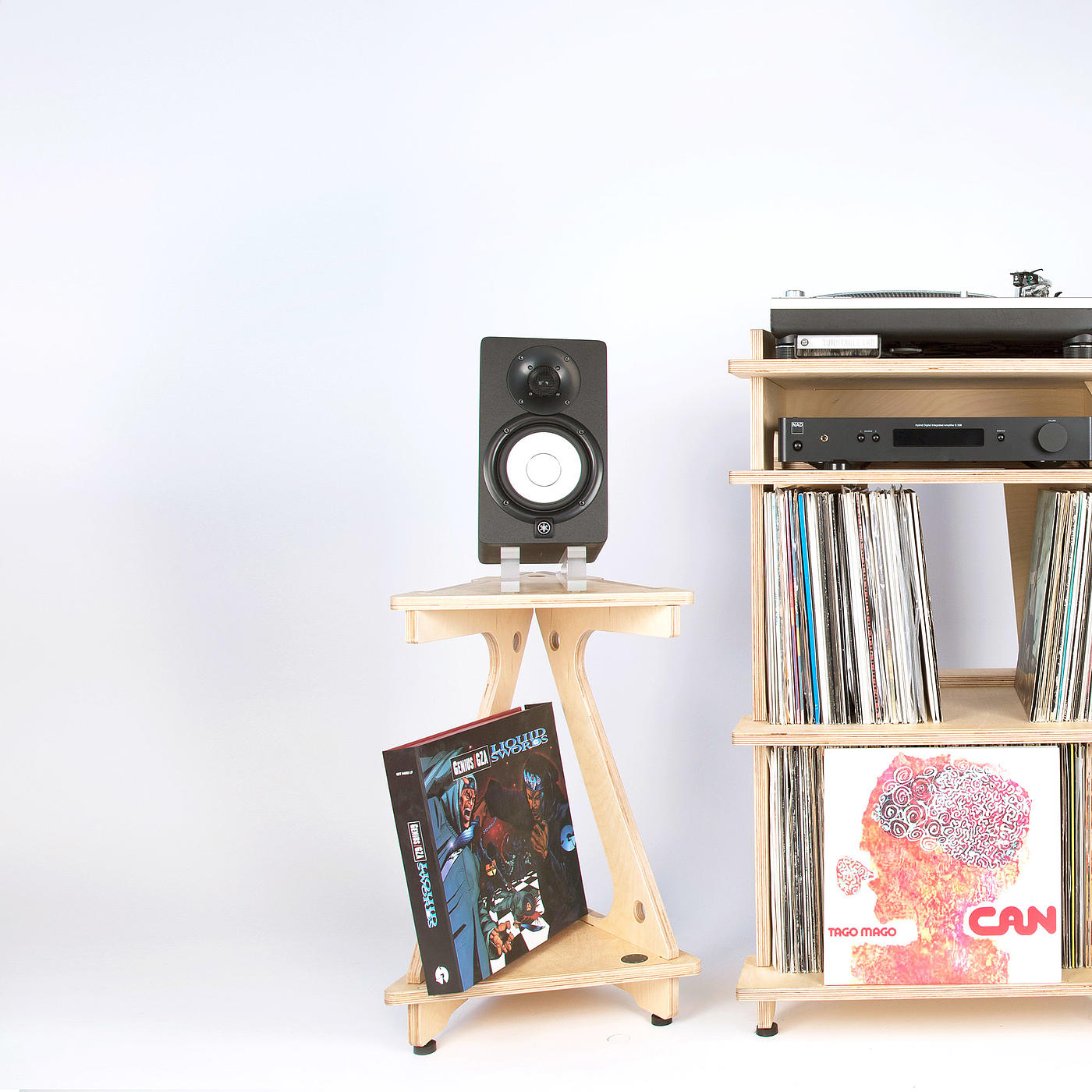 To accompany the Station, we developed triangular, flat-pack speaker stands. Both products are available in baltic plywood or MDF, a dense wood fiber which helps dampen the speaker vibrations. Designed without laminate or veneer, each piece develops its own patina and unique character over time.