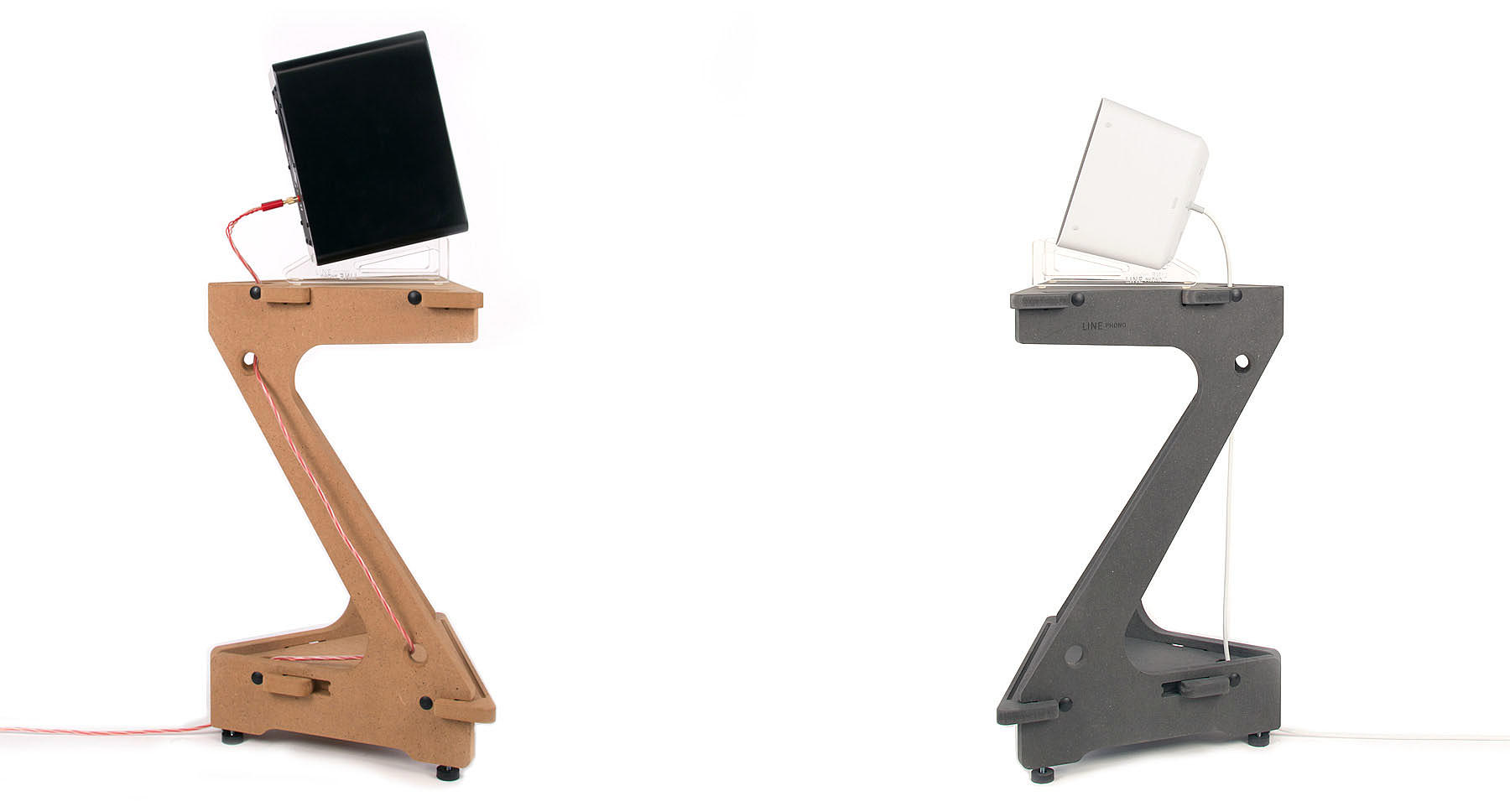 Easy to assemble with interlocking parts and minimal hardware, Line Phono targets vinyl enthusiasts with minimal space for storage. The Turntable Station, for example, has shelves for a turntable, extra accessories, and up to 200 records. Other smart features include special grooves to showcase album covers, headphone hooks and multiple ports for organizing power and audio cables.