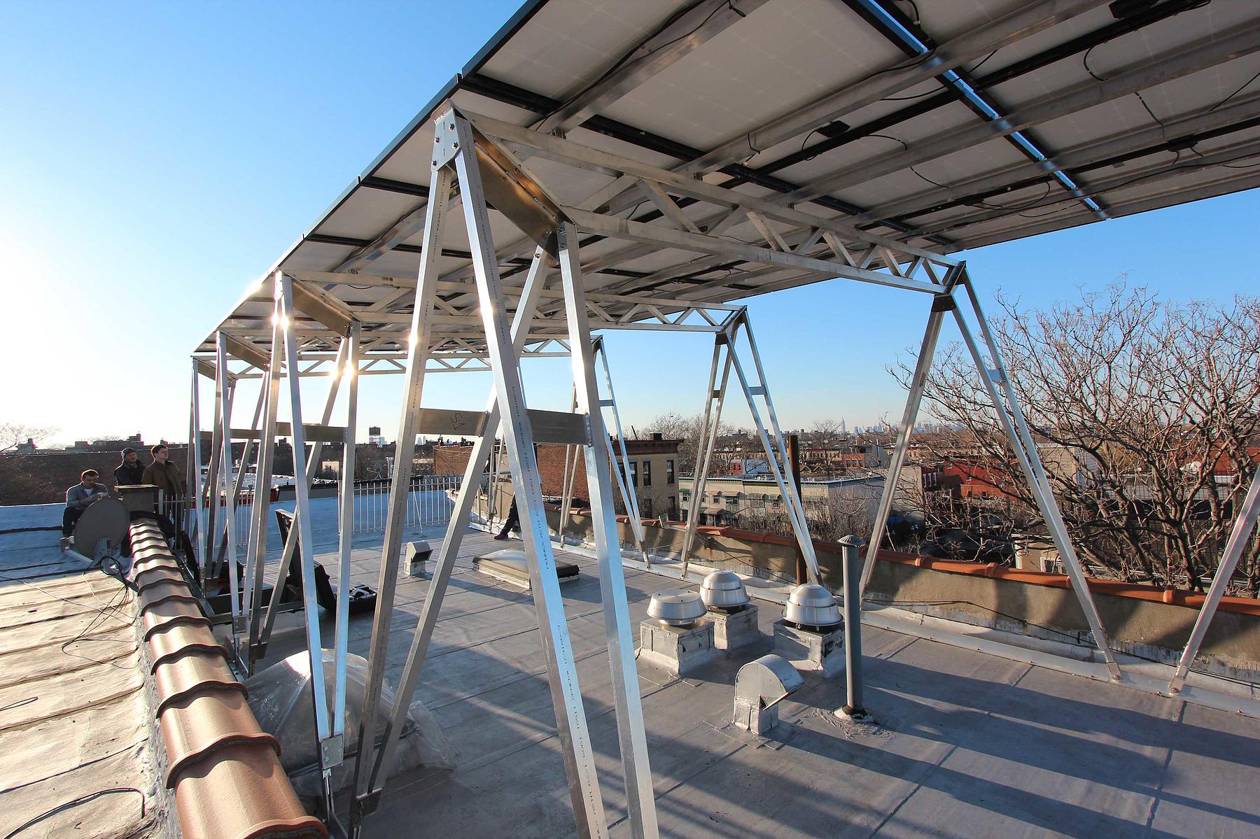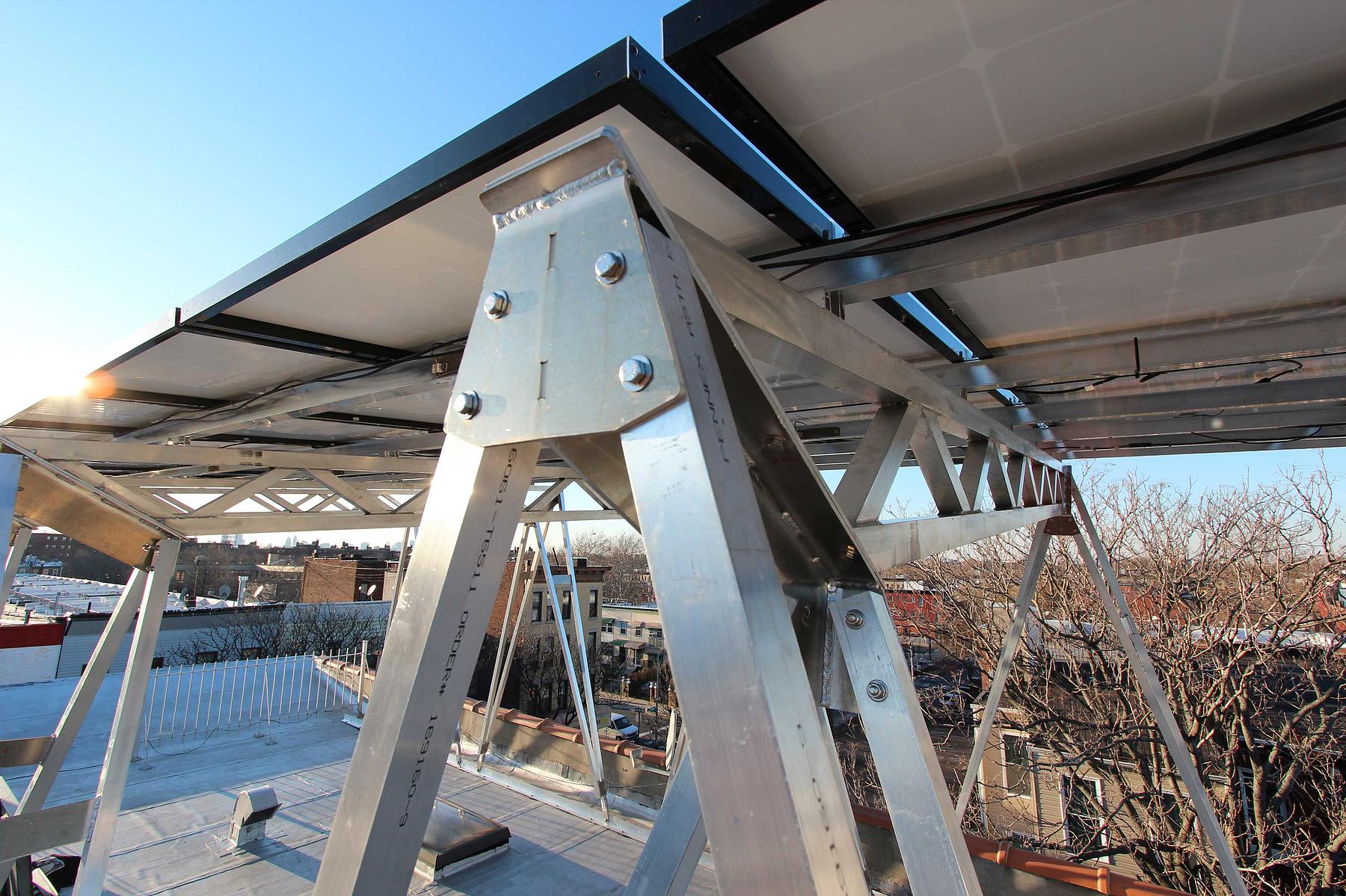 Compared to surface panels, the canopy increases a rooftop’s capacity for generating solar power by 200 percent. And the product uptake is impressive—nearly one hundred have been installed in the first two years across Brooklyn and Queens.