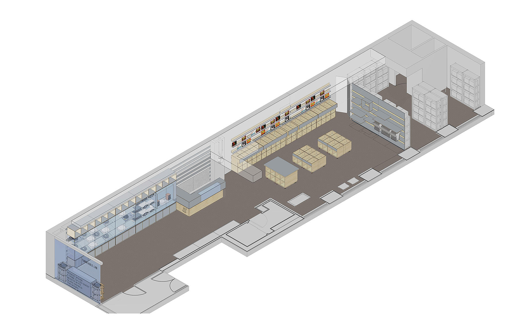 When Turntable Lab—a purveyor of music and audio equipment—outgrew its former space, we teamed up to create their retail space. Encompassing 1,200 sq ft in the East Village, the project is designed for flexibility and to unite the various aspects of the business—not only as a place to showcase high-end audio equipment, but also as a neighborhood record store and hub of DJ culture.